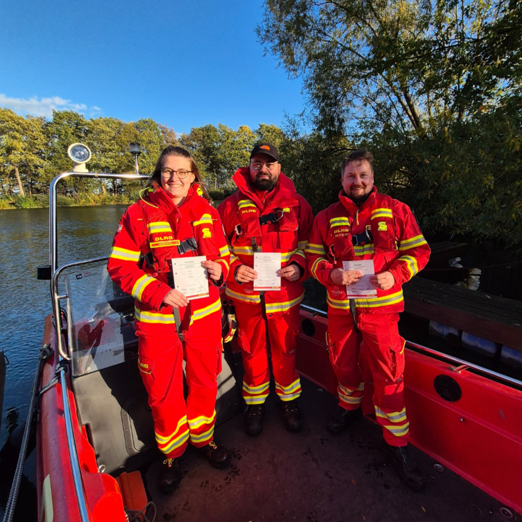 Nach über einem Jahr intensiver Ausbildung war es am 4. Oktober endlich so weit: Unsere drei Anwärterinnen und Anwärter konnten erfolgreich ihre Prüfung zum DLRG-Bootsführer ablegen!
